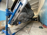 Aby ułatwić sobie pracę przy zabezpieczaniu podwozia itd zrobiłem obrotnicę do nadwozia - przyda się też do kolejnych aut. Dla pewności, że wszystko zmieści mi się w garażu najpierw narysowałem ją na kompie a dopiero później zacząłem ciąć i spawać :).