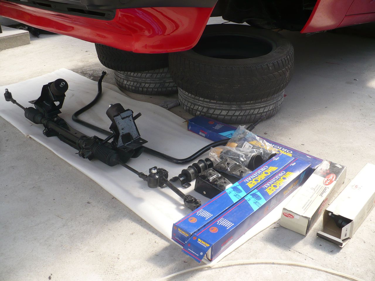 Przedni zawias rozebrany.