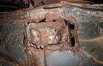 Kawałeczek dalej są miejsca, gdzie są punkty podnoszenia wozu ori podnośnikiem. Też zgniły. Przez otwory w które wkłada się podnośnik wlatuje tyle błota i różnego syfu, że musi to rdzewieć. Będąc konsekwentnym i skoro z przodu nie ma tych miejsc, to z tyłu też ich nie będzie. Wycięte, w środku wyczyszczone ile się dało, zapuszczone jakimś szuwaxem i zapodkładowane, jedna i druga strona.