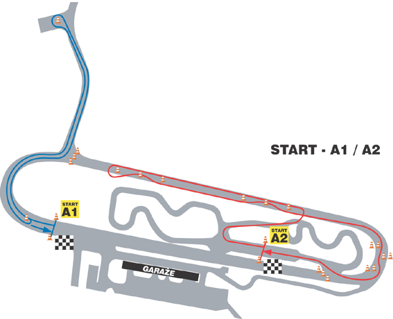 Eliminacja A2 polega na dwukrotnym przejechaniu pętli wg rysunku, z trzema slalomami. Meta jest lotna na zakończeniu drugiej pętli.