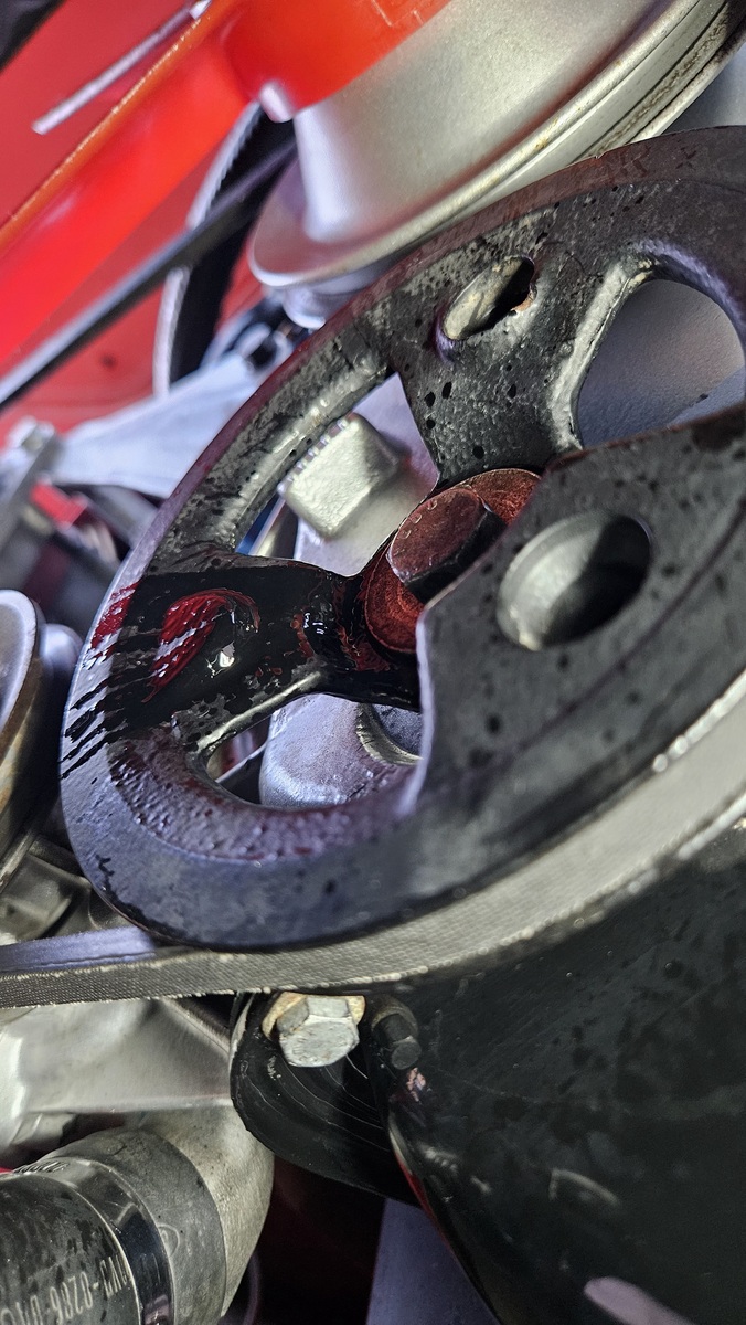 Wyciek oleju spod śruby koła pasowego V4