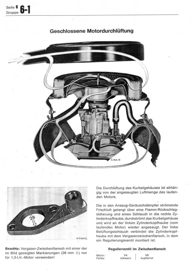 Strona z książki "Ford Capri Werkstatt Handbuch 11.1968" - rozdział 6-1 - silnik