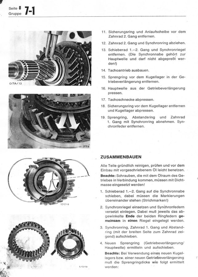 Strona z książki "Ford Capri Werkstatt Handbuch 11.1968" - rozdział 7-1 - sprzęgło i manualna skrzynia biegów