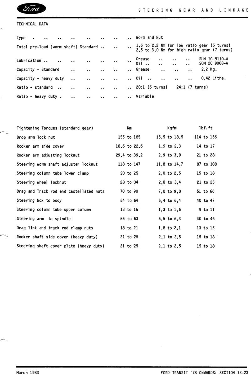 Strona z książki "Ford Transit '78 workshop manual" - 13 - układ kierowniczy
