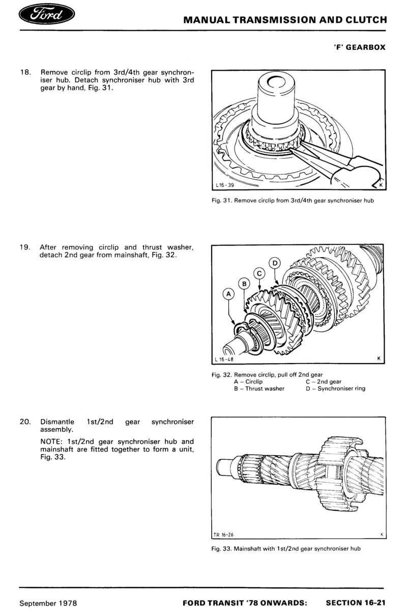 Strona z książki "Ford Transit '78 workshop manual" - 16 - manualna skrzynia biegów i sprzęgło