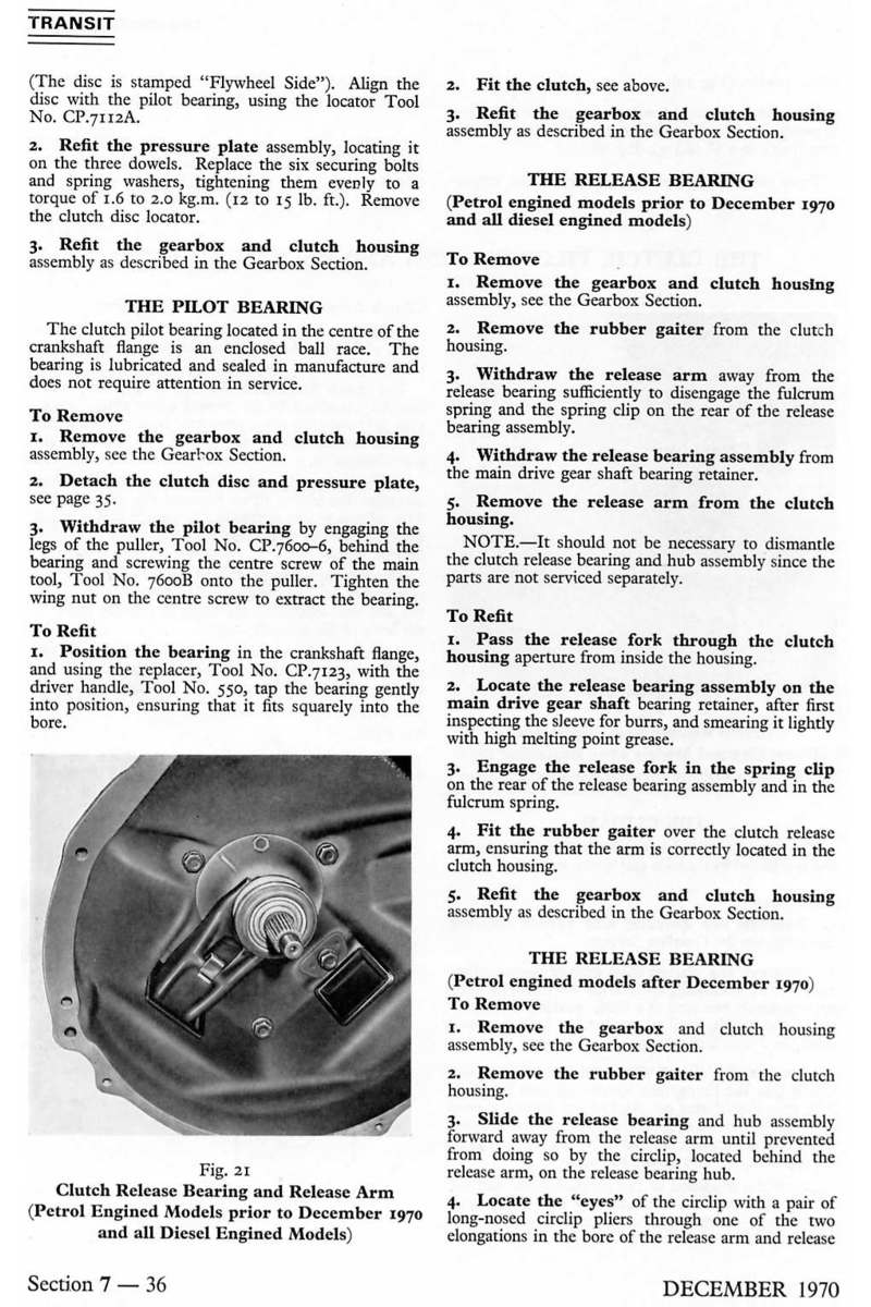 Strona z książki "Ford Transit Mk1 Workshop Manual" - 7 - skrzynia biegów i sprzęgło