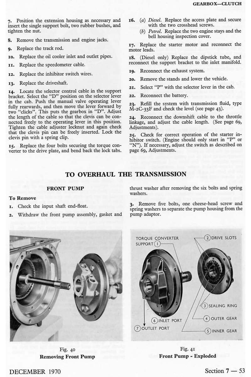 Strona z książki "Ford Transit Mk1 Workshop Manual" - 7 - skrzynia biegów i sprzęgło
