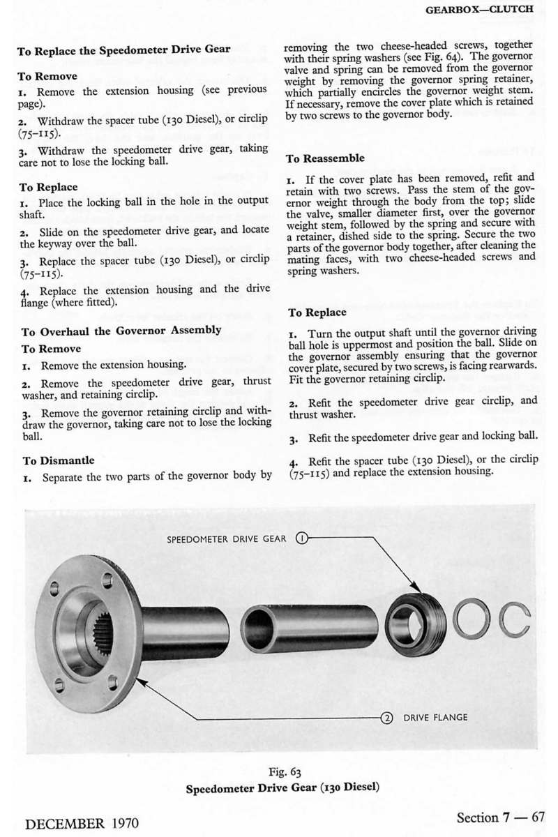 Strona z książki "Ford Transit Mk1 Workshop Manual" - 7 - skrzynia biegów i sprzęgło