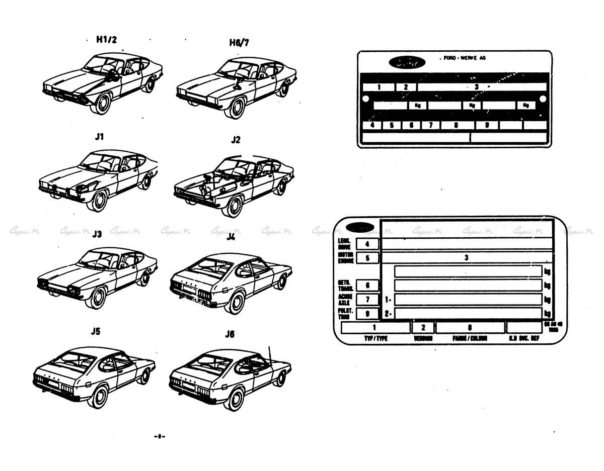 Katalog części: Ford Capri II - wstęp, lista działów, tabliczki znamionowe