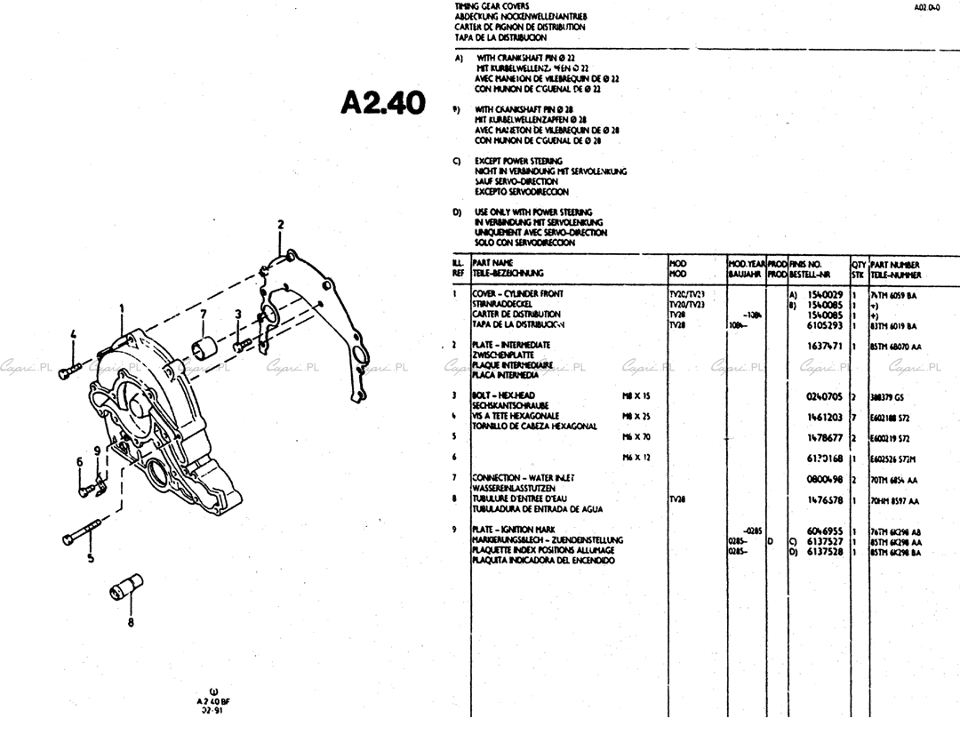 Katalog części: silniki V6 (TV/Köln/Cologne) - 2.0/2.3/2.8 - A02.40 - pokrywa kół rozrządu