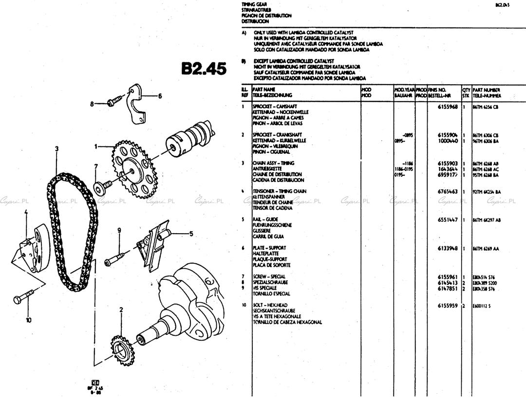 Katalog części: silniki V6 (TV/Köln/Cologne) - 2.4/2.9 - B02.45 - łańcuch rozrządu, koła zębate