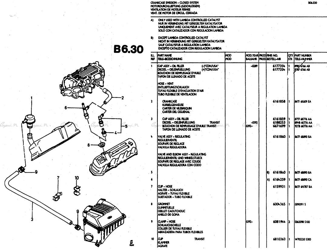 Katalog części: silniki V6 (TV/Köln/Cologne) - 2.4/2.9 - B06.30 - przewietrzanie skrzyni korbowej