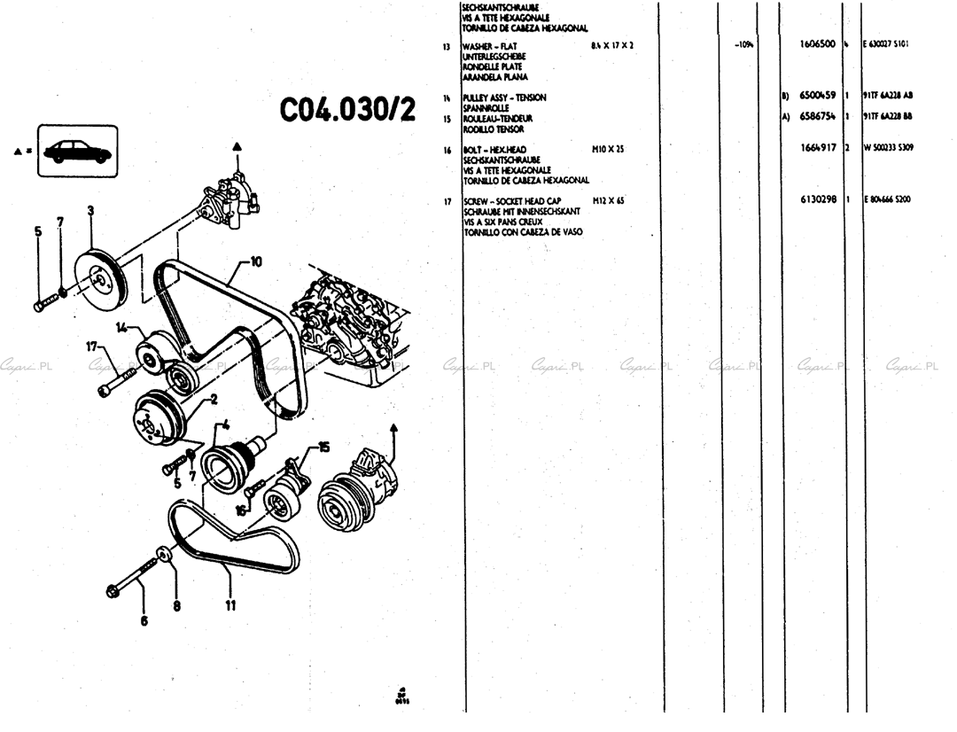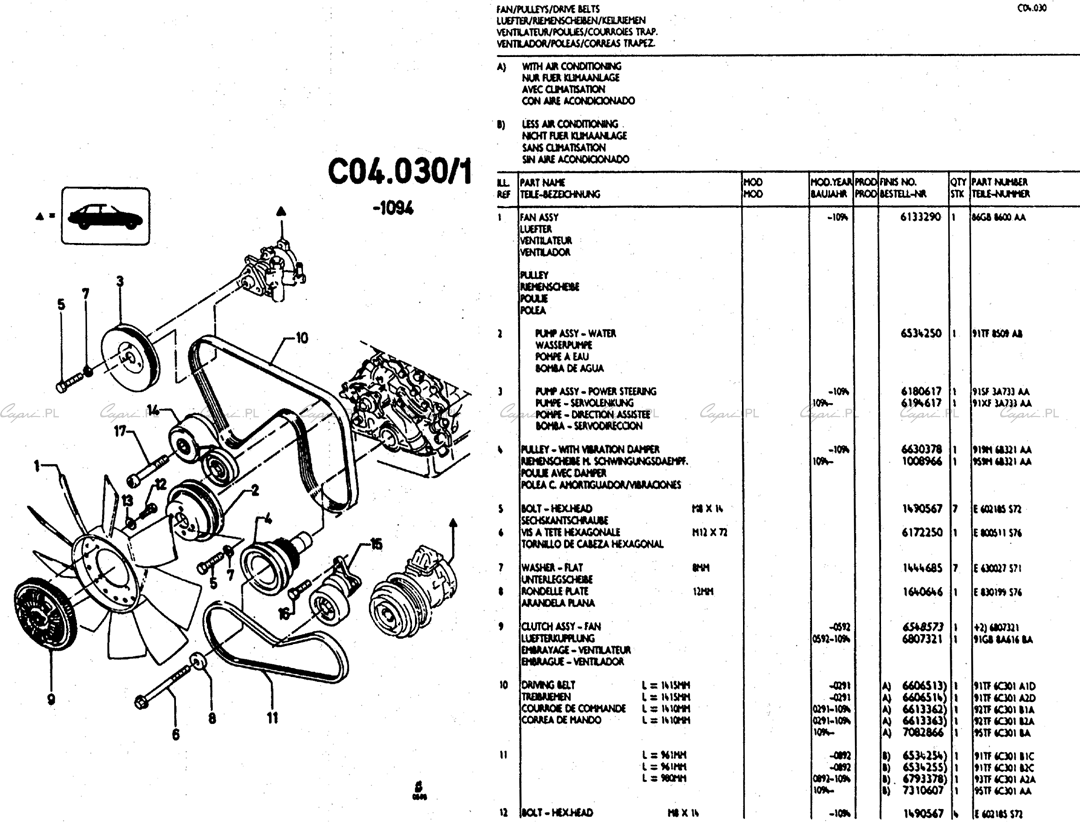 Katalog części: silniki V6 (TV/Köln/Cologne) - 2.9 24V - C04.30 - wiatrak, koła pasowe, paski